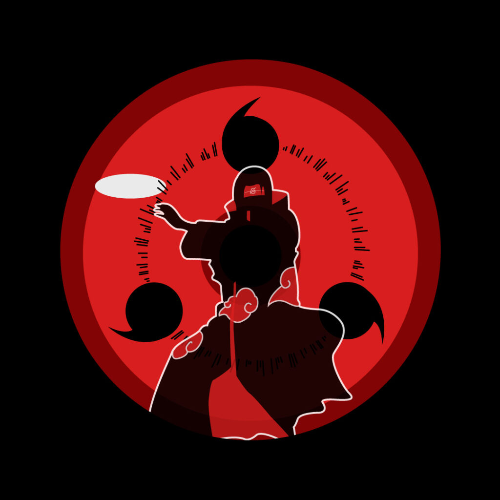 Ilustraciones minimalistas de Naruto en combinación de los “poderes oculares” de la saga junto a sus respectivos portadores.